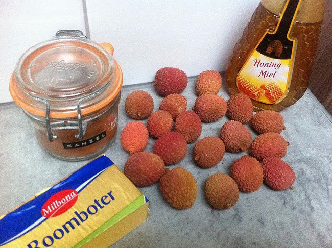 Nguyên liệu cần thiết gồm 15 quả vải, 1 muỗng canh bơ để ở nhiệt độ phòng, 2 thìa mật ong, nửa thìa cà phê bột quế.