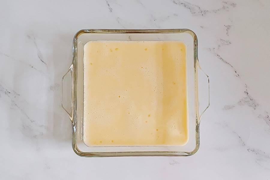 Bước 3: Quét một lớp mỏng dầu ngô vào khuôn rồi đổ hỗn hợp trứng và bột vào.