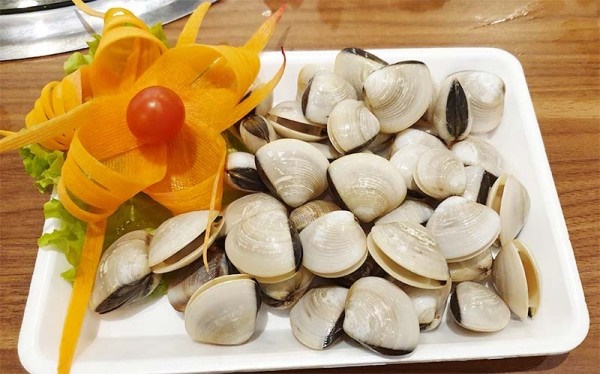 - Ngao mua về ngâm nước muối pha loãng với vài lát ớt cho ngao nhả cát. Trà rửa sạch vỏ ngao, cho vào nồi luộc cho ngao há hết miệng.