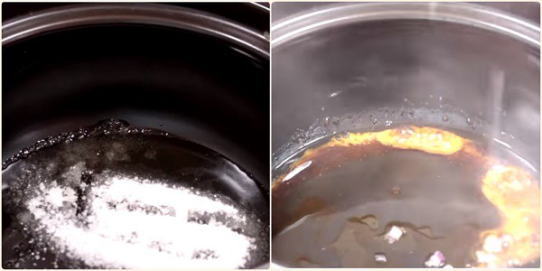 - Dùng nồi đế dày để kho cá, như vậy sẽ giúp cá khi cạn nước kho, ngấm vị mà không bị cháy dưới đáy nồi. Cho 3 thìa đường hoa mai (loại thìa ăn phở) để chưng nước hàng. Đường lên màu caramen cho ít nước vào nồi đun sôi là bạn có nước hàng để kho cá.