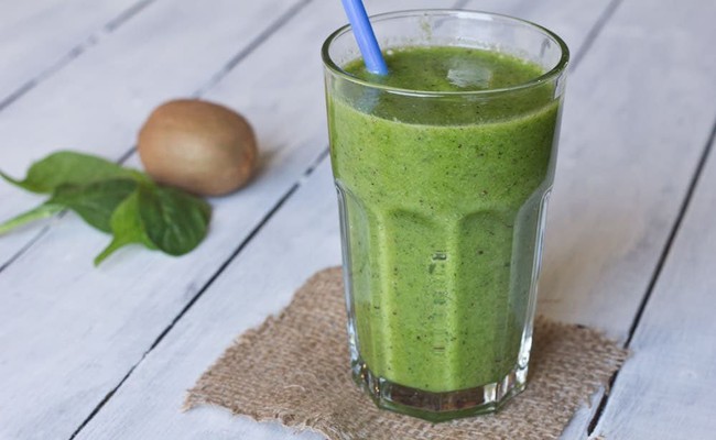 Nguyên liệu: 150gr cải bó xôi, 2 trái kiwi, 1 hộp sữa chua có đường, 200ml sữa tươi không đường/sữa hạt nguyên chất.