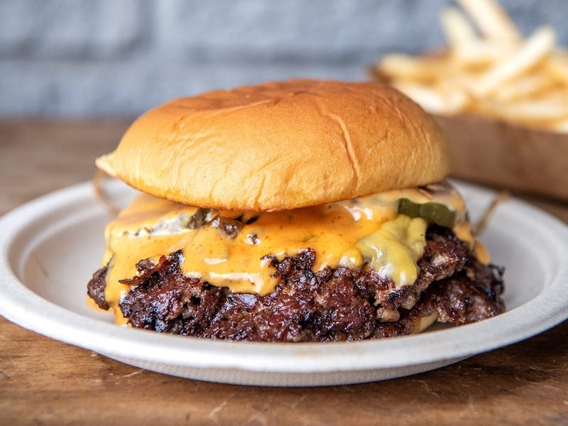 Với thịt bò xay, bạn hoàn toàn có thể làm ra một miếng nhân burger “siêu to khổng lồ”, nêm thêm chút muối và tiêu đen, kẹp bên trong bánh mì là đã có thể thưởng thức ngay lập tức.