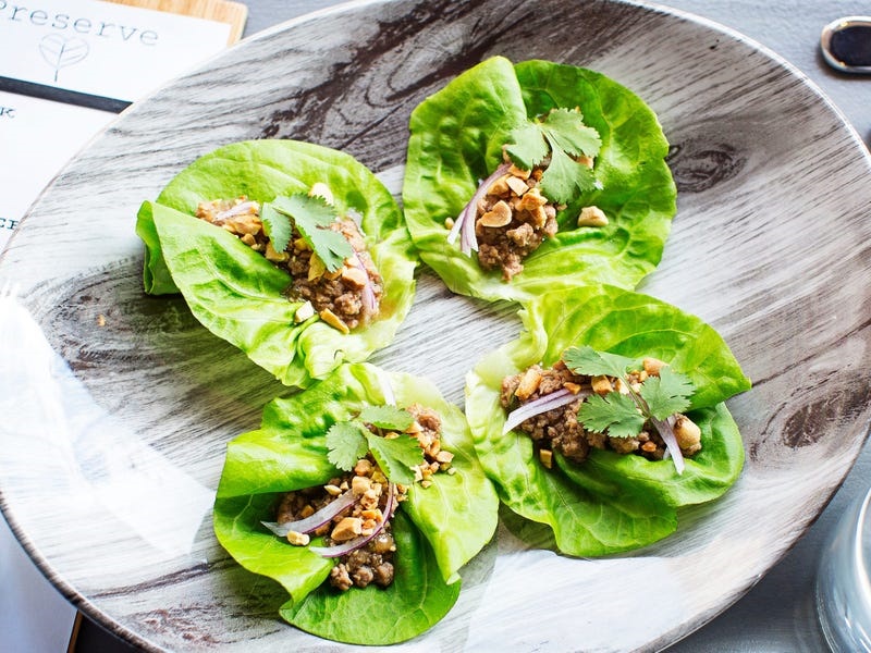 Một món ăn mang đậm phong cách châu Á chắc chắn sẽ không làm bạn thất vọng. Thịt bò nạc sau khi xay sẽ được xào với hành tây, cần tây, gừng và tỏi đã thái hạt lưu. Sau đó, chỉ cần thêm một chút ngò và 2 thìa nước tương là bạn đã có một bát nước chấm hoàn hảo cho món bò cuộn xà lách này.