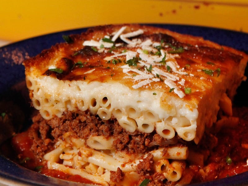 Đây là một món ăn tương đối khó làm, đòi hỏi một sự khéo léo nhưng thành quả thì vô cùng xứng đáng. Với món ăn này, bò xay sẽ được kẹp vào giữa 2 lớp mì ống, bao xung quanh là phô mai và một lớp bột mì. Món ăn này rất hợp để ăn kèm với sốt cà chua.