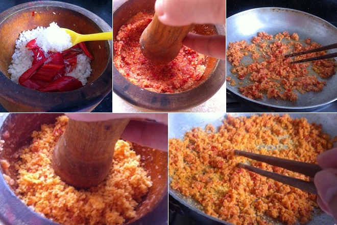 Bước 3: Giã lại hỗn hợp muối ớt rang cho mịn.