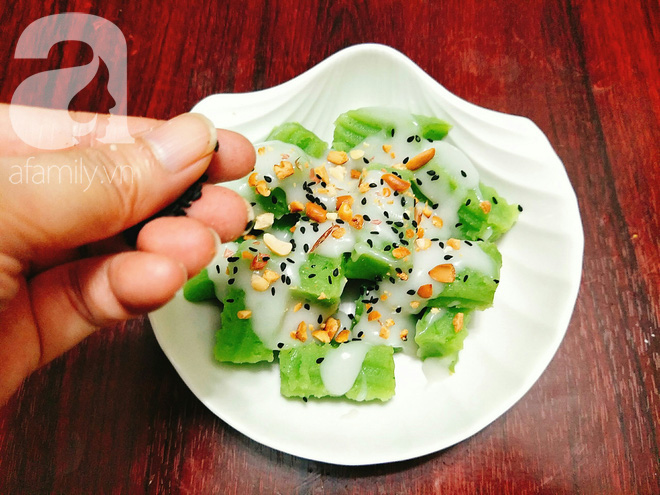 nước cốt dừa, mè rang, đậu phộng rang, với màu xanh mát mắt chỉ nhìn