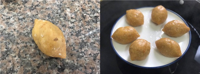Vê từng viên bột thành chiếc bánh bầu dục. Cho bánh vào đĩa rồi cho vào nồi hấp đã đun sôi nước, hấp bánh khoảng 10 phút là bánh chín.