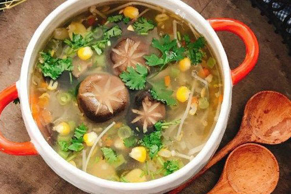 Sau khi nước sôi, bạn cho mướp hương vào nấu khoảng 2 - 3 phút rồi cho nấm kim châm vào, đảo đều rồi nấu tiếp khoảng 1 - 2 phút nữa rồi tắt bếp. Cuối cùng, bạn thêm hành và ngò rí vào cho thơm.