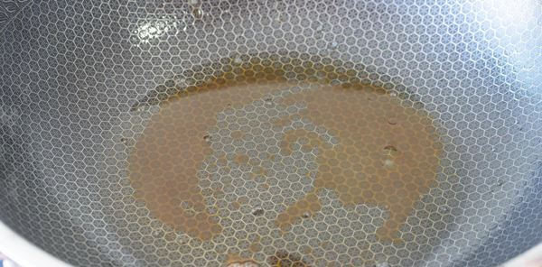 3. Đổ dầu vào nồi, cho một ít đường phèn vào xào đến khi đường ngả màu tạo thành kẹo đắng.