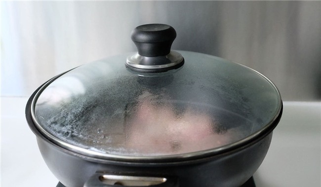 Tiếp đến cho 100ml nước vào sườn rồi đậy nắp vung lại, để lửa nhỏ đun trong 40-45 phút.