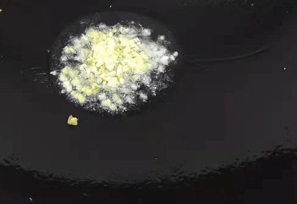 6. Cho thêm một chút dầu vào chảo, đổ tỏi băm vào phi thơm.