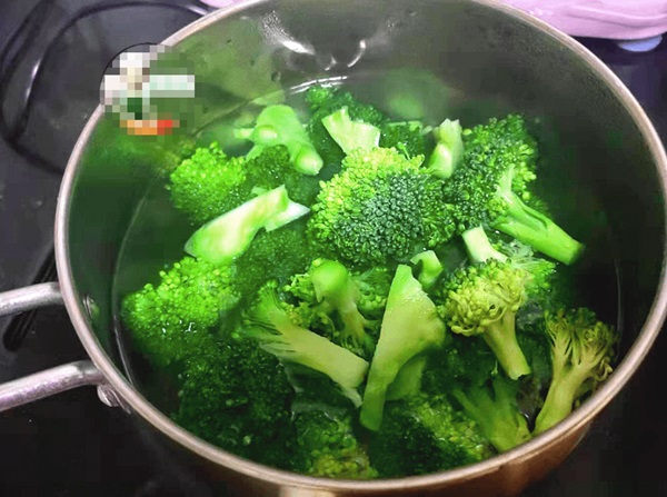 4. Tiếp theo, bạn cho súp lơ đã rửa sạch vào nồi và chần sơ qua, để ráo nước.