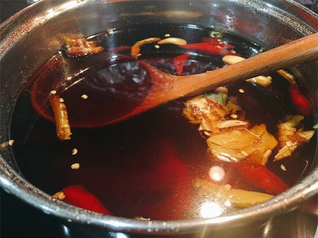 - 2 cái hoa hồi, 1 nhánh quế nhỏ, 1 củ gừng, vài tép tỏi, vài trái ớt đỏ