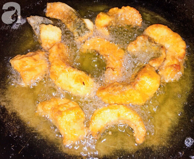 Phần phile cá ướp với ít muối và tiêu xay, phủ qua bột chiên giòn rồi đem chiên với lửa nhỏ đến khi cá vàng giòn thì vớt ra để ráo dầu.
