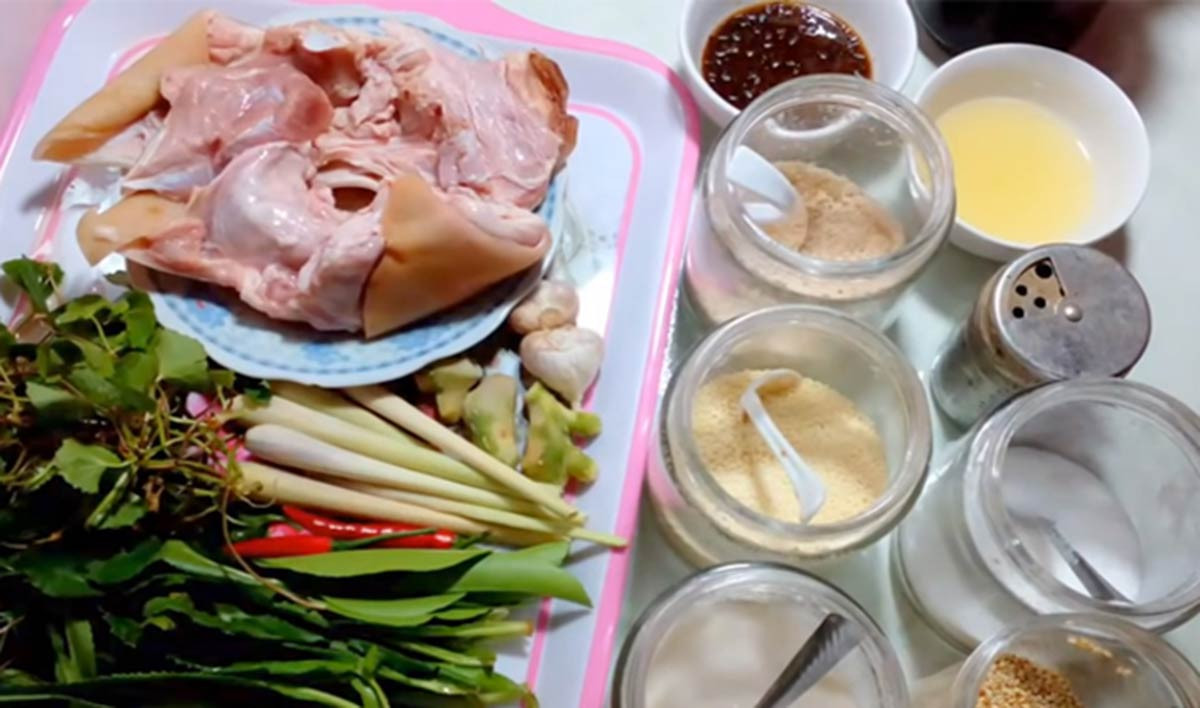 Các loại rau nhặt bỏ lá úa rồi rửa thật sạch. Lá chanh nên thái chỉ và các loại rau thơm khác cũng thái nhỏ.
