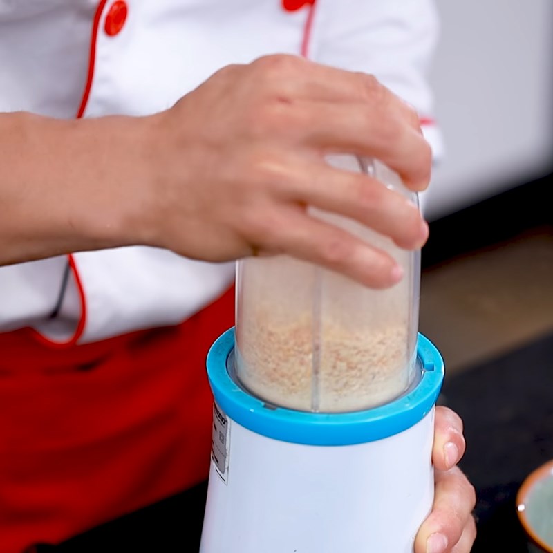 - Tiếp đến, đổ hỗn hợp trên vào cối và xay thật nhuyễn, đổ ra chén.