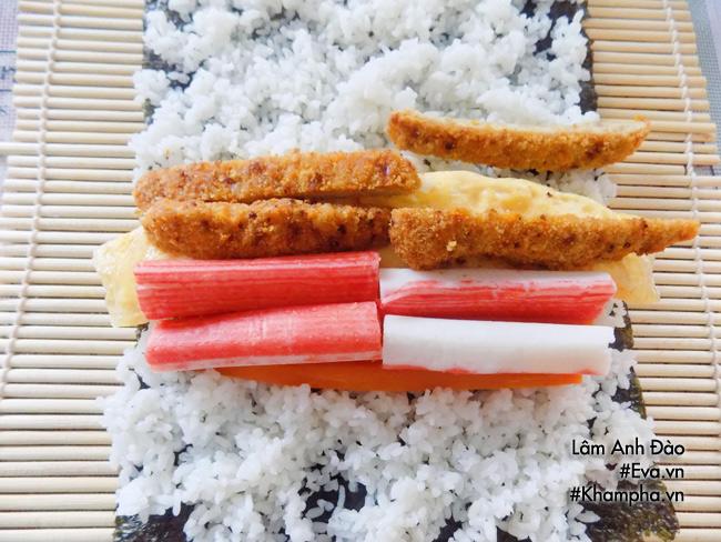- Tuy nhiên, không nên cho quá nhiều nhân làm kimbap bị to quá, khó ăn.