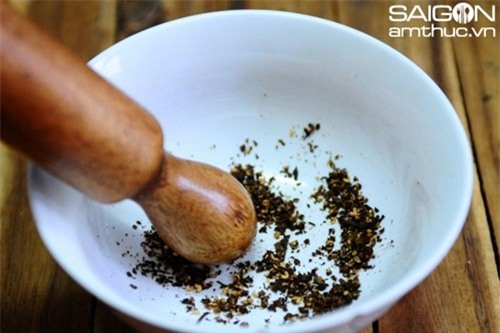 - Hạt mắc khén rang thơm, đợi nguội hẳn thì dùng chày giã nhỏ mịn.