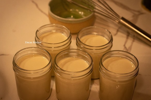 5. Bước tiếp theo bạn cho hỗn hợp sữa này vào lọ thuỷ tinh đậy nắp kín - chuẩn bị cho việc ủ. Có thể sử dụng lò nướng, bật lò ở 100 độ C trong 5 phút để ủ. Nhiệt độ lý tưởng để ủ là khoảng 60-70 độ C. Hoặc bạn có thể để ủ qua đêm, tuỳ thời tiết. Sữa chua sẽ lên men thành công nhưng không đủ đặc, dễ bị lỏng và tách nước.