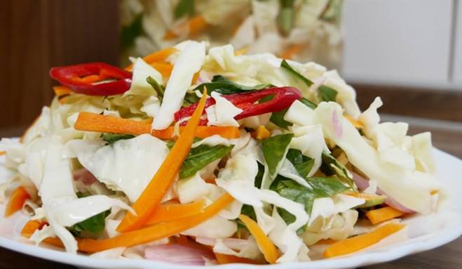 Dưa bắp cải với nguyên liệu rẻ, cách làm đơn giản là món ăn kèm thay rau quen thuộc của nhiều gia đình. (Ảnh: Hayan)