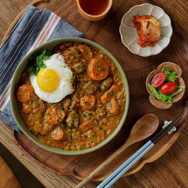 Bước 4: Cho cơm vào tô, rưới cà ri lên và thưởng thức. Để món ăn được trình bày bắt mắt và thêm kích thích vị giác bạn có thể đặt một quả trứng chiên lên, rắc chút rau mùi tây xắt nhỏ. Hoặc tùy theo khẩu vị, sở thích mà bạn trang trí cho món ăn thêm phần hấp dẫn nhé!