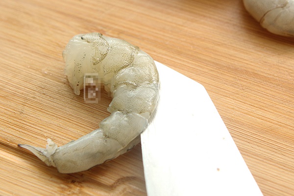 1. Bỏ đầu và bóc vỏ của tôm tươi, sau đó loại bỏ đường chỉ màu đen lưng tôm. Đừng ném đầu tôm, chúng sẽ được dùng để nấu nước cho ngọt.