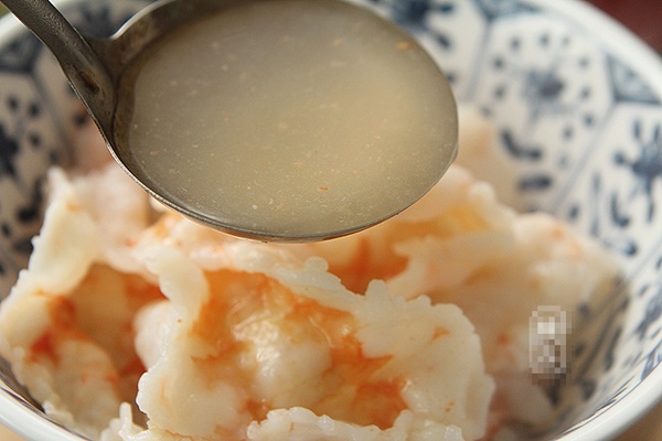 8. Sau khi chần chín hết tôm thì sử dụng nước dùng đó, đổ vào bát canh rong biển. Nước dùng sẽ có vị ngọt thanh, tôm cũng rất giòn.