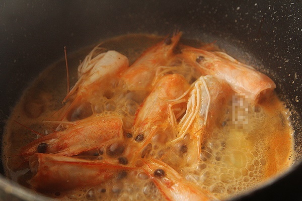 5. Cho một lượng dầu vừa đủ vào nồi, đổ đầu tôm vào xào chín, đổ ít nước vào đun sôi để lấy nước dùng.