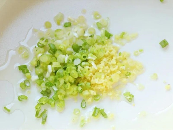 Bước 2: Cho hành cùng gừng vào chảo cùng chút dầu phi thơm. Thêm nấm hương cùng cà rốt thái nhỏ vào. Có thể nêm một xíu muối cho đậm đà hoặc bỏ qua bước cho muối.
