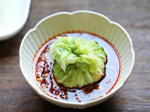 Bước 6: Cho vào xửng hấp chín trong khoảng 15 phút. Trong thời gian đợi cải thảo hấp chín có thể làm nước chấm. Phần công thức nước chấm này có thể tùy thuộc vào sở thích của mỗi người và mỗi gia đình. Có thể sử dụng công thức nguyên liệu nước chấm gồm hành, gừng băm nhuyễn, thêm dầu hào, nước tương, giấm balsamic, ớt bột, khuấy đều. Ngoài ra, bạn cũng có thể dùng nước mắm chua ngọt.