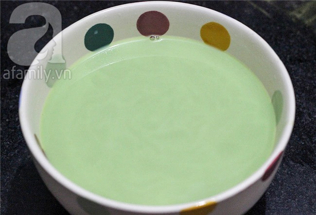 Hòa tan 5g bột trà xanh với chút nước sôi rồi đổ nước trà xanh vào sữa khuấy đều là xong.