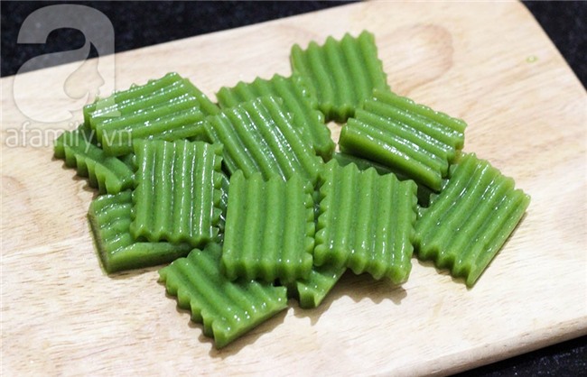 Khi thạch đông lại, bạn cắt thạch thành miếng mỏng vừa ăn.