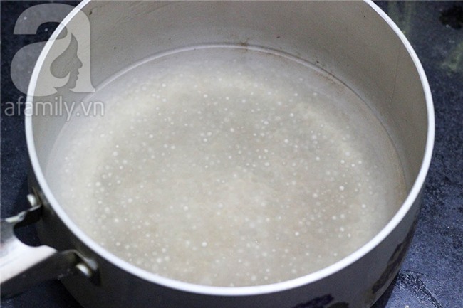 Cho bột báng vào nồi, đổ ngập nước đun sôi thì vặn nhỏ lửa đun tiếp đến khi bột báng trong là được.