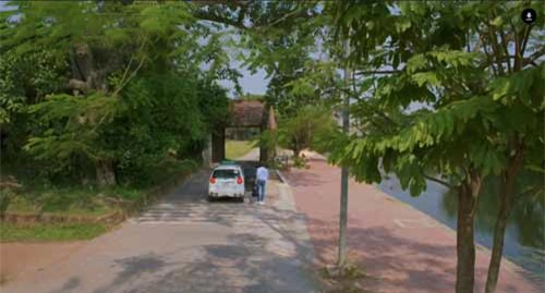 Junsu dừng chân trước cổng làng nơi bố mẹ Linh ở để tìm gặp Linh trong phim Tuổi thanh xuân 2. Ảnh. Cắt từ clip.