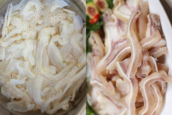 - Ngâm tai lợi vào âu nước lạnh rồi vớt ra để ráo và thái mỏng. Như vậy khi ăn tai lợn sẽ giòn ngon và trắng.