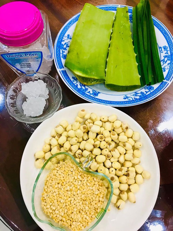 - Đậu xanh: 500 gr - Nha đam: 500 gr |