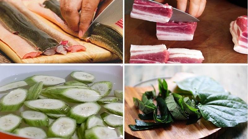 - Lươn sau khi mua về thì bạn rửa sạch, loại bỏ đầu và nội tạng, lọc xương, sau đó ngâm trong nước muối loãng khoảng 5 phút. Tiếp đến, rửa lươn lại một lần nữa rồi thái thành khúc vừa ăn.