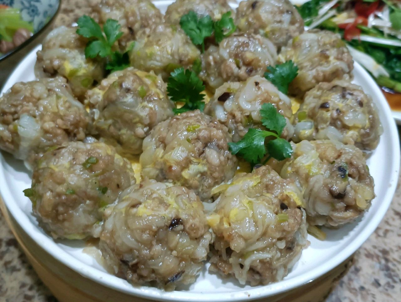 Bước 4: Tiếp theo bạn viên phần nguyên liệu thịt băm củ cải thành những hình tròn. Sau đó xếp vào đĩa và hấp chúng trong khoảng 15 phút là món ăn hoàn thành.