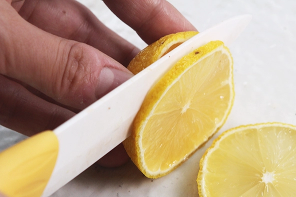 Bước 4: Rửa sạch chanh, dùng muối chà vào vỏ để loại bỏ bớt tinh dầu. Sau đó dùng dao cắt thành từng lát mỏng và loại bỏ hạt.