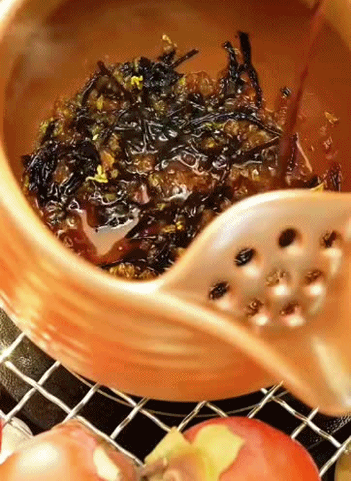 Bước 1: Đổ 3g trà đen vào nồi, thêm 3g hoa mộc khô. Tiếp đó thêm chút đường phèn vào.