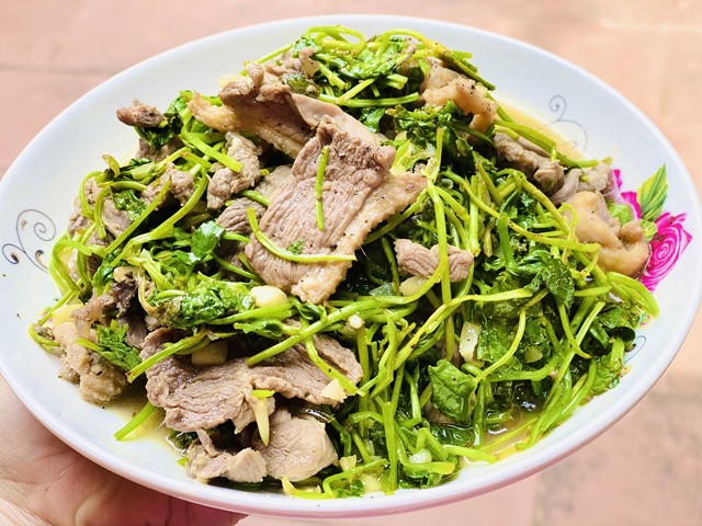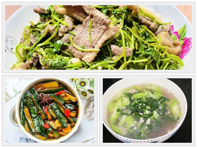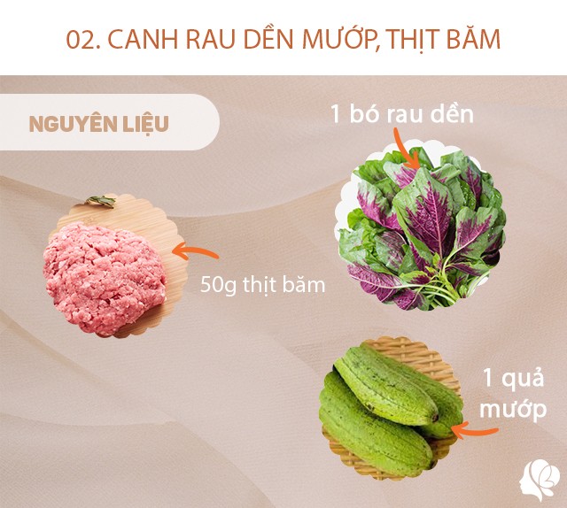 Chuẩn bị: 50g thịt băm, 1 quả mướp hương, 1 bó rau dền, muối vừa ăn.