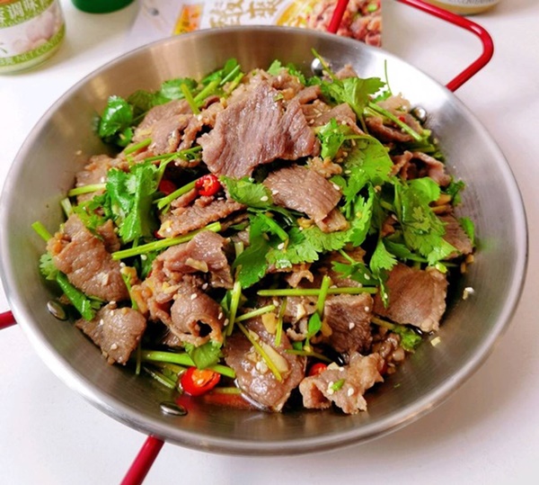 Như vậy món thịt bò trộn rau mùi đã hoàn thành với màu sắc bắt mắt. Món ăn thơm có vị chua ngọt đậm đà. Từng miếng thịt bò mềm thấm gia vị ăn cùng với bánh phồng tôm trong những bữa cơm ngày đầu năm ngon không gì bằng!