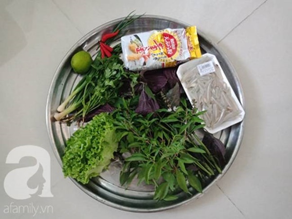 Xà lách và rau thơm nhặt sạch, ngâm nước muối loãng 10 phút, rửa lại với nước sạch, vớt ra rổ để ráo.