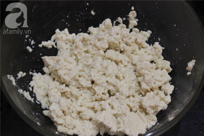 Nặn đậu phụ thành từng viên tròn vừa ăn.