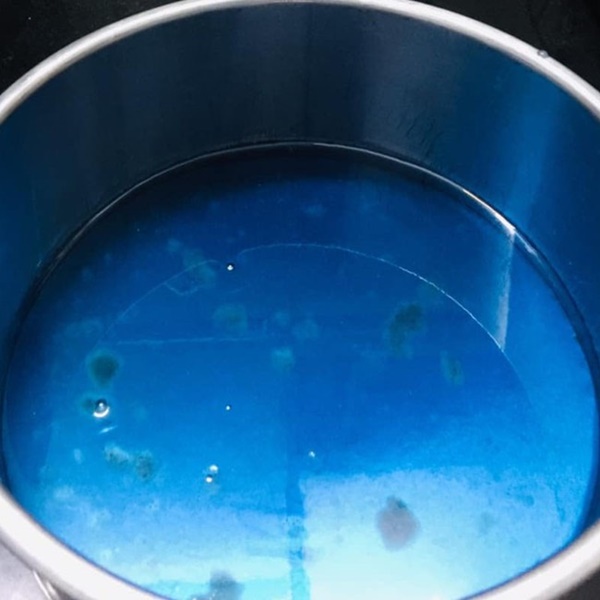 Bạn cho vào nồi: 900ml nước trà hoa đậu biếc, 100gr đường, 10gr bột rau câu dẻo. Vừa đun vừa khuấy trên lửa nhỏ cho tới khi thấy hỗn hợp sôi lăn tăn thì tắt bếp.