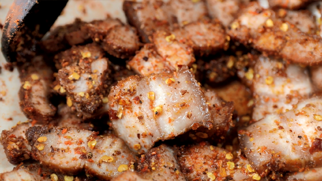 Thái nhỏ thịt ba chỉ sau khi nướng/chiên (Ảnh: Cooky)