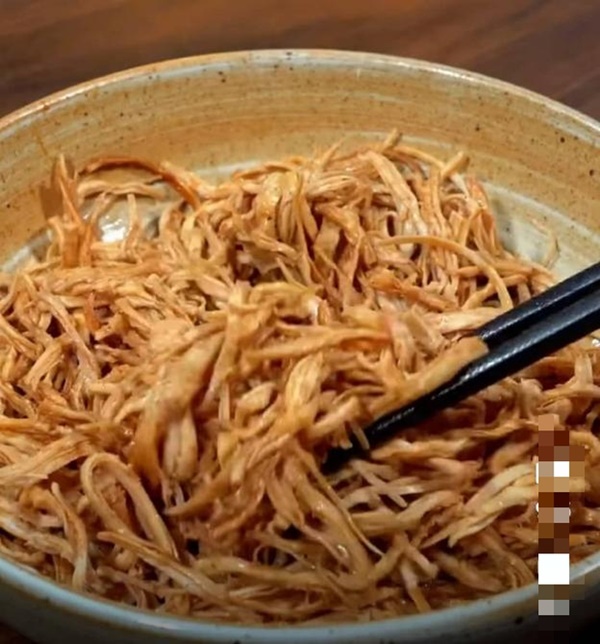 Xé xong, bạn nêm 1 thìa dầu hào, 2 thìa dầu điều, 1,5 thìa đường nâu và 1 thìa hạt nêm rồi trộn đều để 30 phút. Sau 30p bạn lại bóp đều 1 lần nữa để gia vị đã tan hết sẽ ngấm đều hơn.