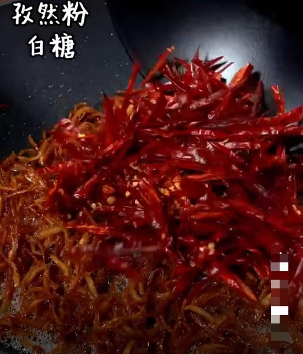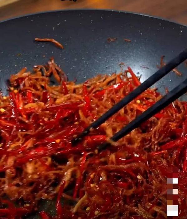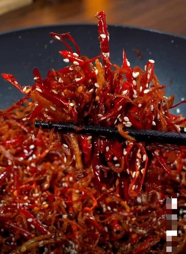Cuối cùng, bạn rắc lên gà khô thành phẩm số vừng rang và đảo đều. Có thêm vừng khi ăn sẽ có thêm độ bùi béo rất ngon miệng.