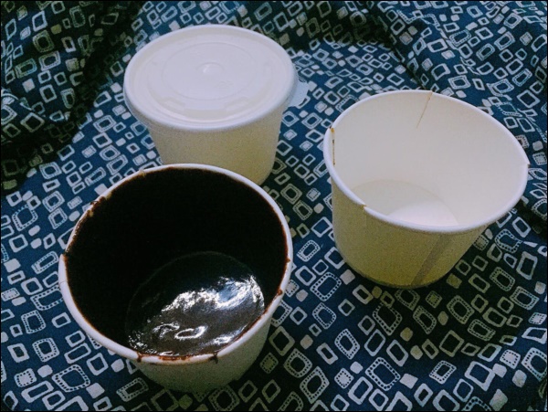 - Chuẩn bị 2 cốc giấy, sau đó đun chảy 100g socola rồi dàn đều vào cốc, sau đó giữ trong tủ lạnh cho cứng lại.