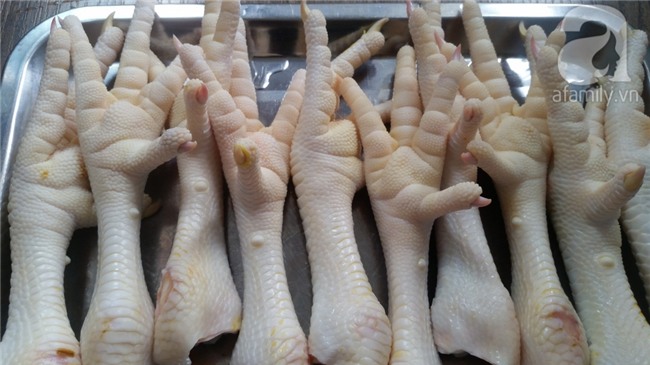 Chân gà rửa sạch, ngâm với nước muối khoảng 10 phút rồi cho ra để ráo nước.